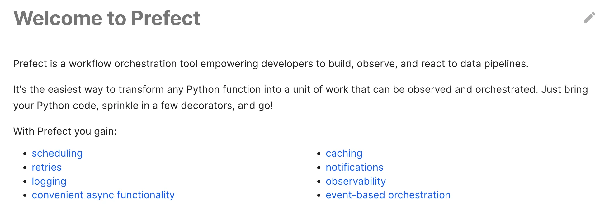 Prefect is a data workflow management system, designed to help teams build, run, and monitor data workflows. It provides tools for orchestrating data pipelines, managing their execution, and ensuring data integrity.